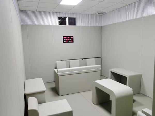 公司致力于打造國內時(shí)尚現代化的審訊室,紀委監察室、談話(huà)室、走讀室、等配套工程。量身定制-站式解決方案:審訊室軟裝施工設計、安全防撞,審訊平臺搭建、智能控制系統應用。