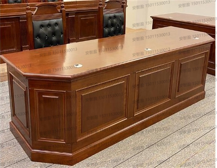 書記員是人民法院和人民檢察院內(nèi)擔(dān)任辦理案件的記錄工作和有關(guān)事項(xiàng)的人員,并協(xié)助辦理一系列司法輔助工作。而書記員所使用到的書記臺(tái)就屬于法庭辦公家具。書記員桌椅是位于法官桌椅正下方的中間位置,"安智盈"書記臺(tái)采用高密度纖維板,厚胡桃木皮貼面,胡桃木皮光滑平直,顏色、厚度均勻、木紋清 晰,采用實(shí)木皮封邊。書記員座位應(yīng)比法官審判人員座位低20至40厘米,一般是有1到3人,主要的工作是擔(dān)任法庭的記錄工作、并辦理有關(guān)審判的輔助性事項(xiàng),如開庭的準(zhǔn)備工作,保管證據(jù)、整理卷宗、處理文書工作,司法統(tǒng)計(jì)工作,接待來(lái)訪、處理來(lái)信工作,協(xié)助審判人員進(jìn)行調(diào)查以及對(duì)政策、法規(guī)的宣傳工作等。