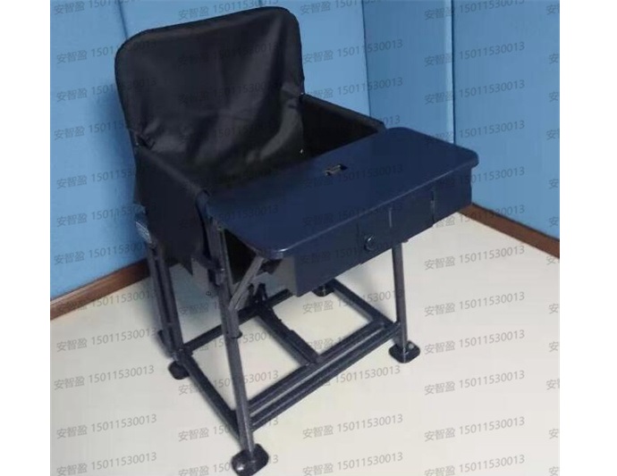 "安智盈"訊問椅在生產(chǎn)制作上就與我們平時生活中使用的椅子不同,由座板、靠背、扶手、臺板、腰環(huán)、U型鎖kao等組成,臺板下方為籠式框架,與臺板成一體,可限制目標(biāo)人腿部運(yùn)動范圍。臺板鎖閉裝置在2500N的作用力下桌板不出現(xiàn)被開啟,能夠正常使用。