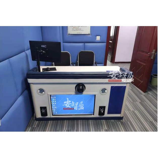 ③審問桌不便加抽屜,防止被審訊人情緒激動拉出自殘,必須有一定高度的擋水線,以遮擋嫌疑人的視線,避免對偵查人員的行為進(jìn)行揣摩。
