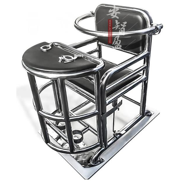 本產(chǎn)品勻選用201優(yōu)*質(zhì)不銹鋼材料,包括靠背、座面、椅腿、扶手及胸部約束環(huán)另外包括座椅前設(shè)有整體弧形開(kāi)關(guān)裝置。其桌面上方裝有手*銬,方便約束其手腕。椅腿下方裝有直接與地面固定底盤。