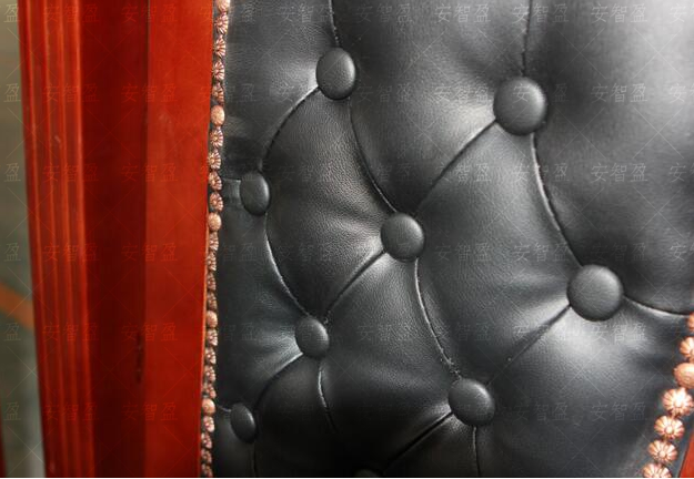 靠背及坐墊:采用軟包工藝。靠背上部中間為實木雕刻天平圖案裝飾構(gòu)件、靠背上部兩側(cè)采用實木欄桿式裝飾構(gòu)件。