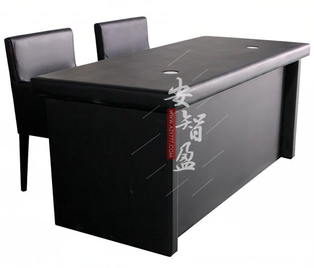 桌面左右兩邊各有一個(gè)6cm直徑穿線孔,前方可安裝25cm鋁質(zhì)立體警*徽;一桌配兩椅;其他尺寸均可做