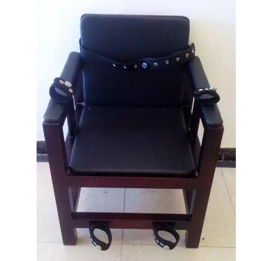 木質(zhì)采用實(shí)木制作,堅(jiān)固耐用,背面坐面為西皮軟包裝,采用優(yōu)*質(zhì)皮革耐磨性能好,四角安全固定于地面,椅子上有約束帶,安全防護(hù)有效防止嫌疑犯自殘。整體舒適、嚴(yán)肅。