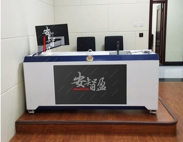 桌體正前方可加裝21.5寸電腦顯示器或液晶電視,方便提示嫌疑人須知問題;前方設(shè)有7.5cm直徑j(luò)ing*徽。