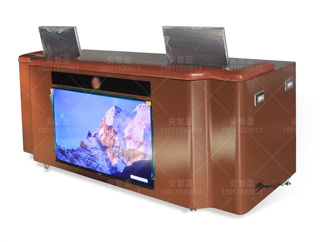 ③桌面配置電腦升降器;桌體正前方也可加裝電腦顯示器或液晶電視,方便提示嫌疑人須知問題;