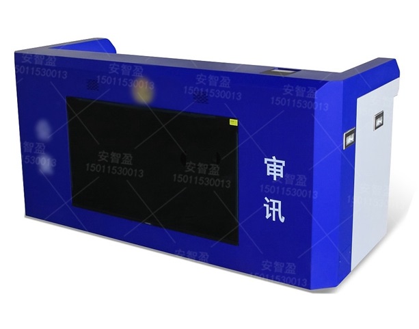 3、產(chǎn)品可與各種品牌電腦配套使用,還具有很好的防撞動(dòng)能,桌面左右兩邊各有一個(gè)6cm直徑穿線孔,前方設(shè)有jing徽,整體組裝方便快捷。桌面配置電腦升降器;桌體正前方也可加裝電腦顯示器或液晶電視,方便提示嫌疑人須知問(wèn)題。