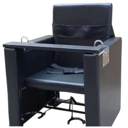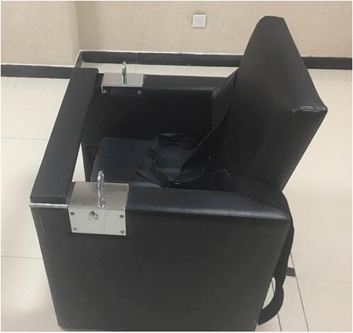 4、特性:審訊椅手部采用U型鎖約束,U型鎖下按至合適位置將嫌疑人手部鎖住,扶手部位寬度便于簽字書寫;胸部及腰部以約束帶束縛;腿部以環(huán)形腳踏鎖,jing員在椅后用腳踏可將鎖打開,嫌疑人小腿置入,踩踏鎖上,操作方便。