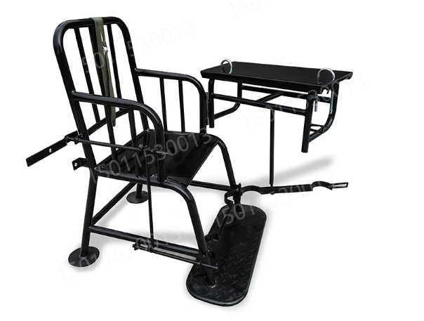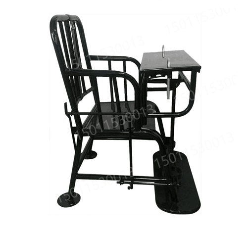 新型審訊椅采用上層鐵藝,座椅前端設(shè)有方形小桌整體開關(guān)的一些裝置,下部設(shè)有腿部固定裝置,靠背帶有約束帶,固定安*全可靠,全縫焊接,堅固耐用。表面利用重型烤漆,外型美觀、經(jīng)久耐用。具有頭、手、腳、身的一體防御功能,既有效防止嫌疑人的反抗、脫逃、自殘等行為發(fā)生,又保證了審訊人員在工作過程中的人身安*全。