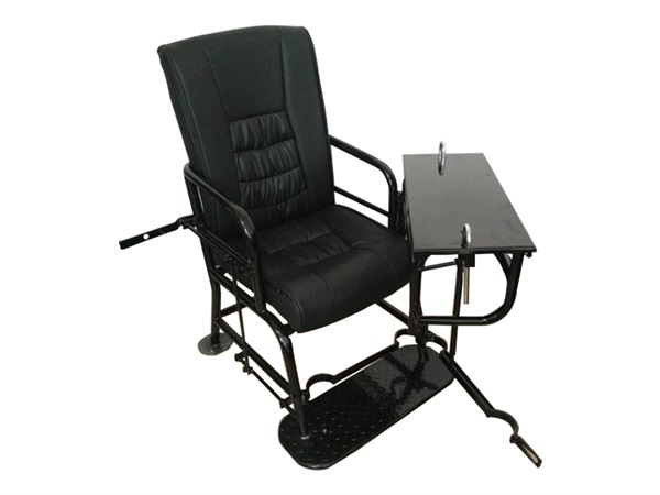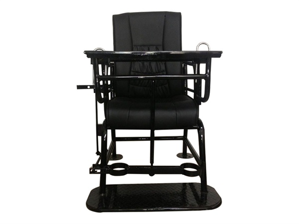 此椅為鐵質(zhì)豪華軟包,局部軟包處理,前方加裝擋板,更人性化,前上方裝有鎖具,打開(kāi)時(shí)需用鑰匙,鑰匙通用,腿部也裝有配套鎖具,個(gè)別地區(qū)客戶不要腳鎖,如不要腳鎖需說(shuō)明!地面可固定,不易逃脫。