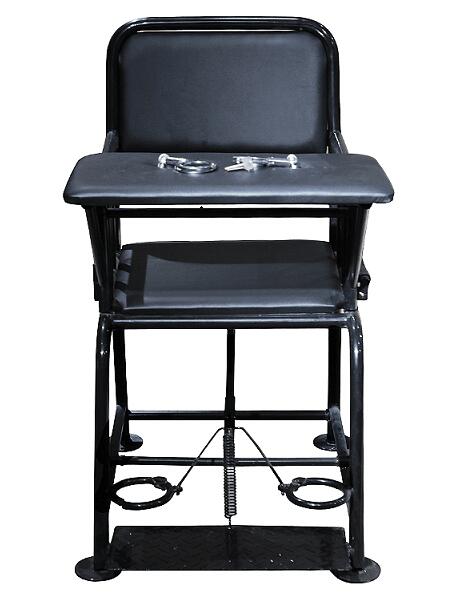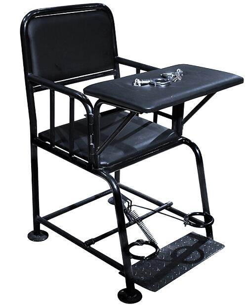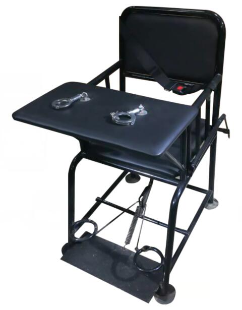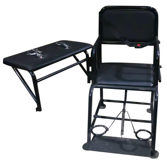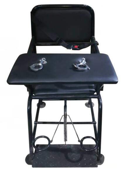 桌面上有手*銬,下面有腳環(huán),可有效防止嫌疑犯自殘、逃脫。座面、桌面采用西皮軟包,耐磨性能好。背面帶有約束帶,也可不加。