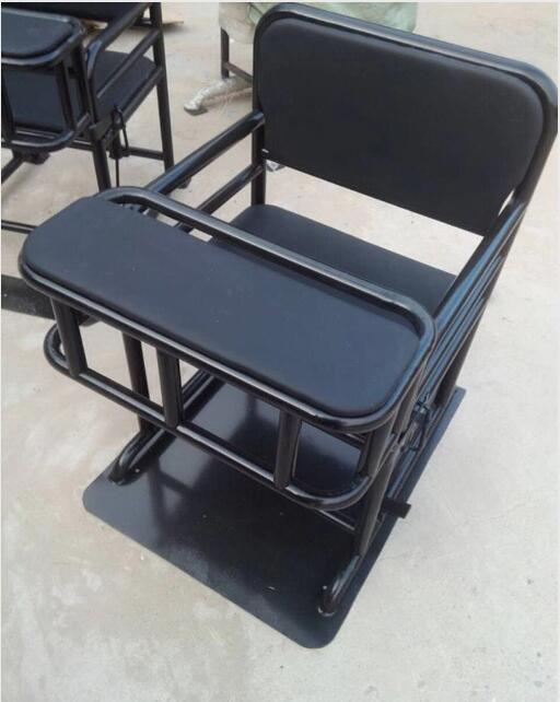 此款鐵質(zhì)審訊椅,采用優(yōu)*質(zhì)鐵管制作而成,結(jié)實(shí)耐用,桌面、靠背、坐墊處采用西皮軟包,桌面也是鋼板制成,無棱角更安全,椅子可固定與地面上。