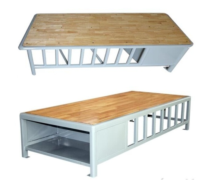 尺寸:長2000mm×寬900mm×高440mm 床架及立柱材質(zhì)60mm×40mm×2.0mm帶大圓弧異形鋼管 床板托架材質(zhì)40mm×20mm×2mm鋼管 床頭箱側(cè)板及底板δ1.2mm鋼板,下橫梁40mm×40mm×2mm鋼管 側(cè)柵欄Φ25×1.5mm鋼管 床板δ20mm厚橡木板 床腿與地面固定板4mm鍍鋅鋼板 安裝方式 MB膨脹螺栓或化學(xué)螺栓與地面固定床 床體鋪板為橡木板,厚度為20mm,木板表面噴涂木器專*用清漆防腐蝕。木板與框架用螺栓連接牢固,鋪板表面與框架表面平齊,固定好后所有螺栓孔作隱蔽處理,從床體任一部位都接觸不到固定螺栓。 床體框架制作好后除銹表面進(jìn)行噴塑處理。 |